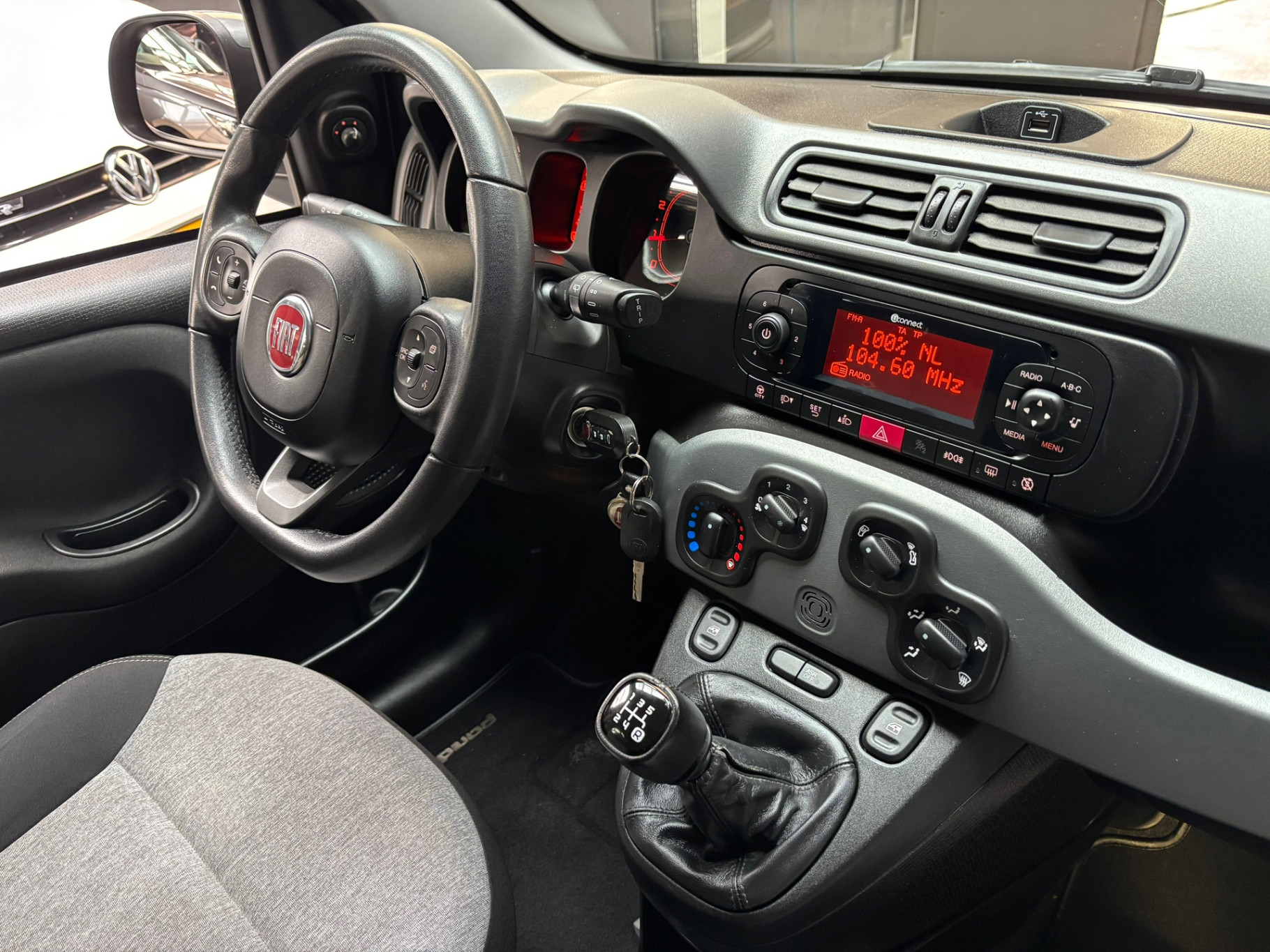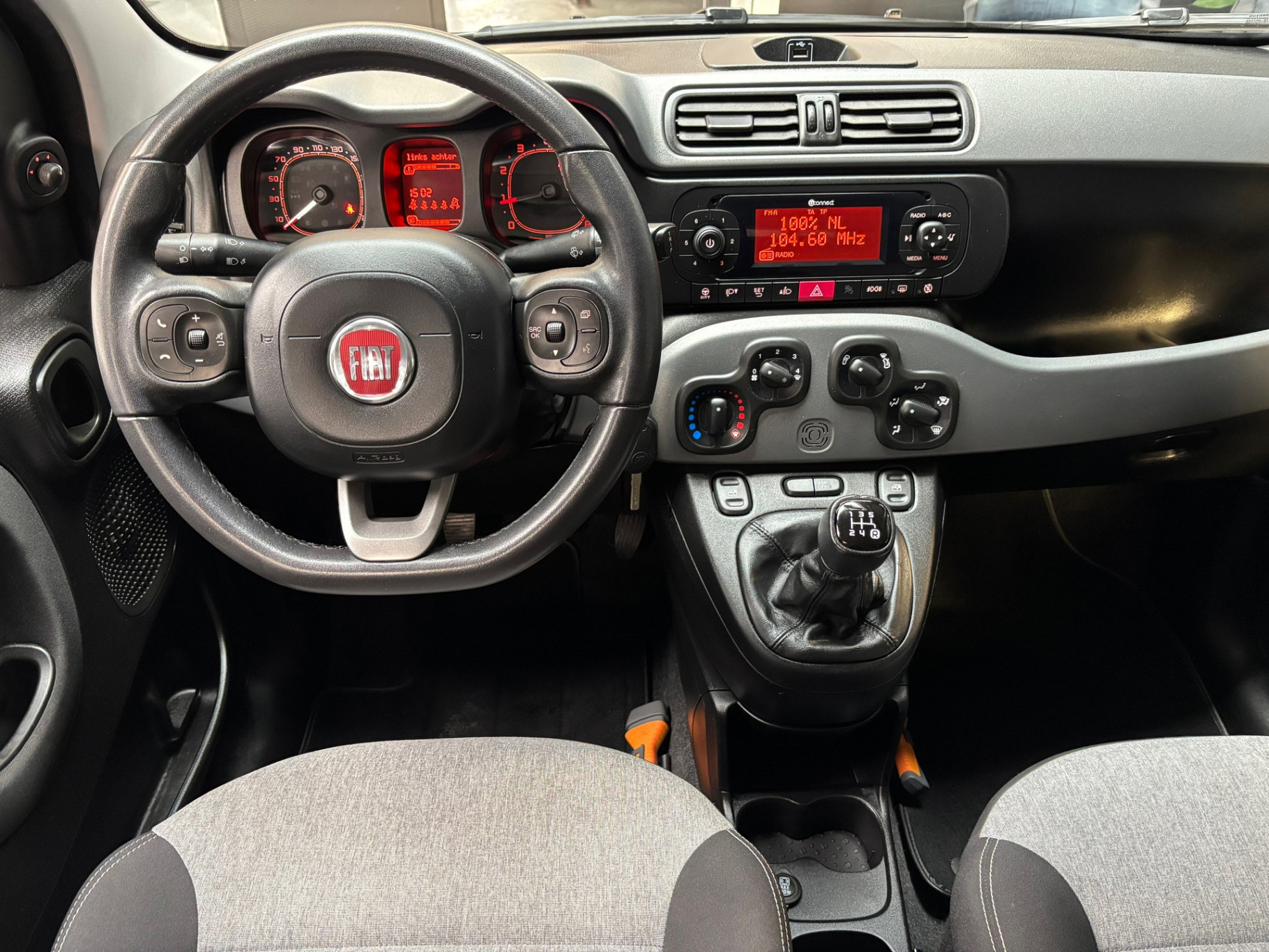 Aan boord van deze Fiat Panda is een achteropkomend verkeer waarschuwing voor extra veiligheid. De radio bedienen zonder uw handen van het stuur te halen: het kan in deze auto dankzij de audiobediening op het stuurwiel. Natuurlijk heeft deze auto ook airconditioning. En deze auto heeft ook lederen stuur en centrale deurvergrendeling met afstandsbediening als standaard uitrusting.