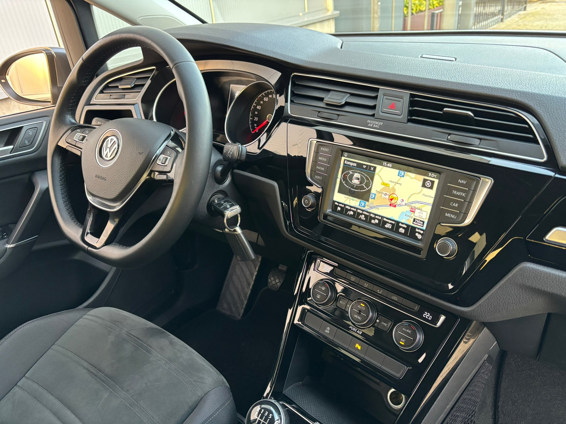 Adaptive cruise control houdt de ingestelde snelheid vast en houdt automatisch afstand tot uw voorligger. In deze Touran vindt u schakelaars op het stuur om het audio-installatiesysteem te bedienen. Met de automatische airconditioning selecteert u de gewenste temperatuur. Het systeem doet de rest. Het luxeniveau in deze Volkswagen is niet alleen gericht op comfort, maar ook op uw veiligheid. Tal van sensoren helpen u om de omgeving in de gaten te houden. De automatisch inschakelbare verlichting zorgt dat automatisch de verlichting wordt ingeschakeld als het donker wordt, wat bijvoorbeeld in tunnels erg handig is. En de regensensor zet de ruitenwissers aan zonder dat u eraan hoeft te denken. Ook automatisch dimmende binnenspiegel, centrale deurvergrendeling met afstandsbediening, bagage afdekhoes, boordcomputer en lederen versnellingspook horen tot de voorzieningen op deze auto.