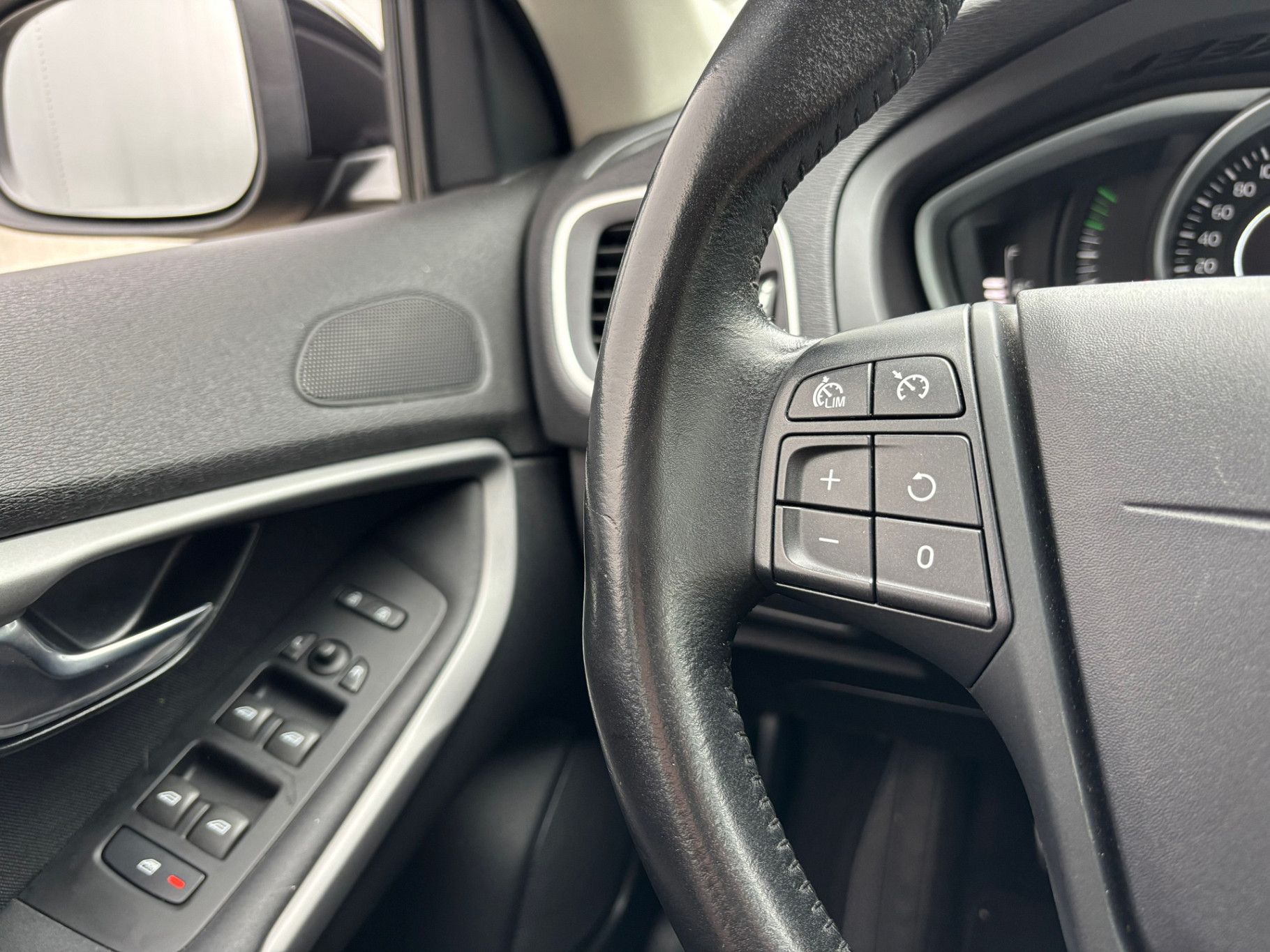 Deze Volvo is voorzien van knoppen op het stuur om het audiosysteem te bedienen. De sensoren van de achteropkomend verkeer waarschuwing houden zicht op de dode hoeken achter u. Te weinig afstand tot de achterligger? Het systeem geeft direct een signaal. In een auto als deze kunt u niet zonder automatische airconditioning, zodat de temperatuur altijd goed is. De ene neerslag is de andere niet. Dankzij de regensensor krijgt u automatisch precies zoveel wisbewegingen die het zicht nodig heeft. Een heerlijke egale snelheid? Even de cruise control inschakelen! Ook automatisch dimmende binnenspiegel, lederen stuur, boordcomputer en lederen versnellingspook zijn aan boord.